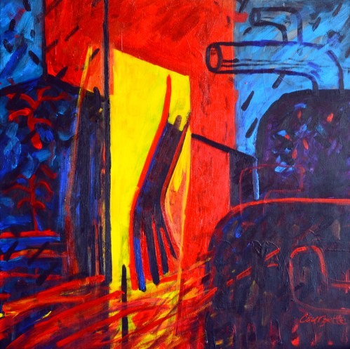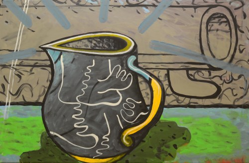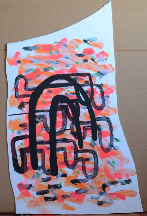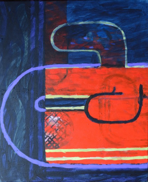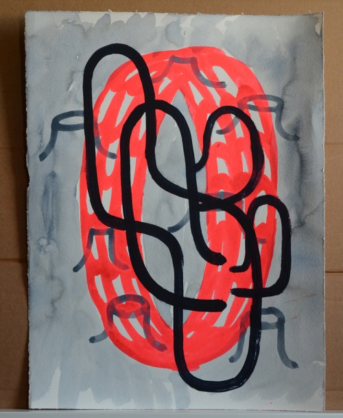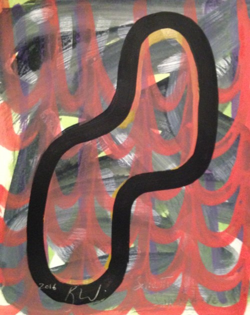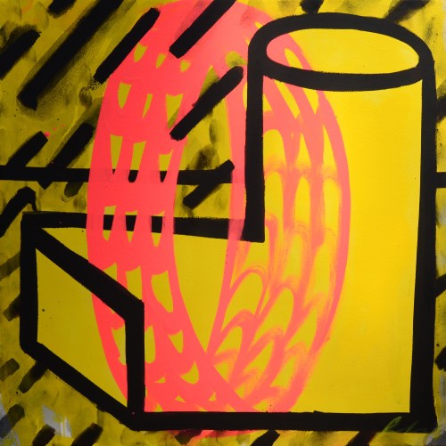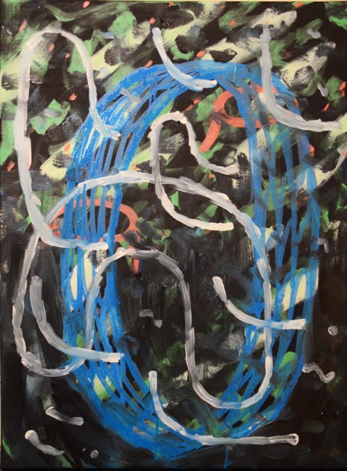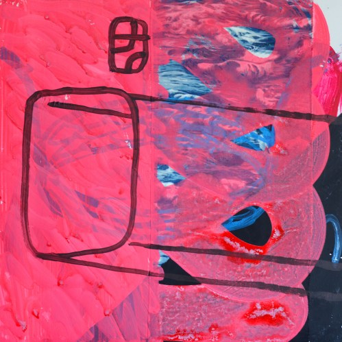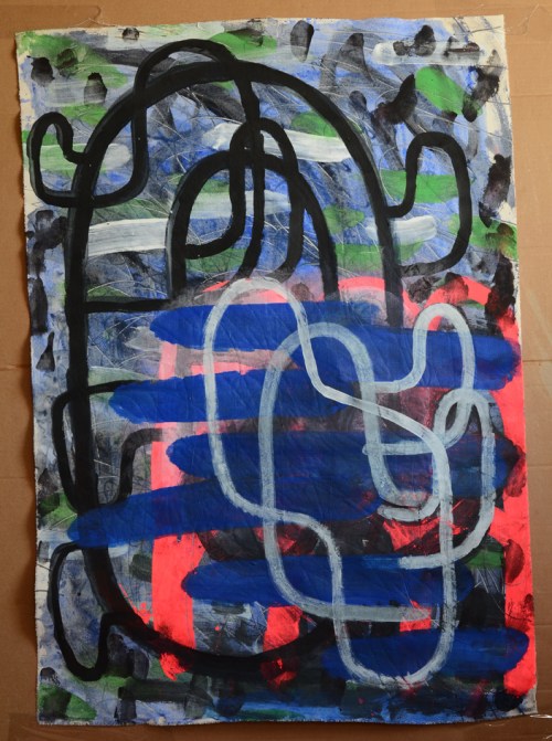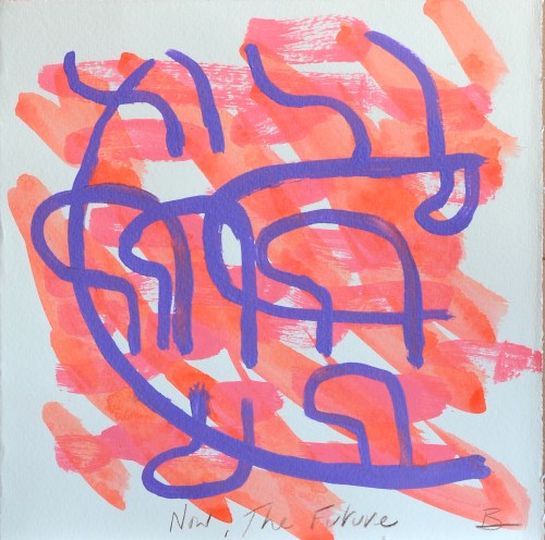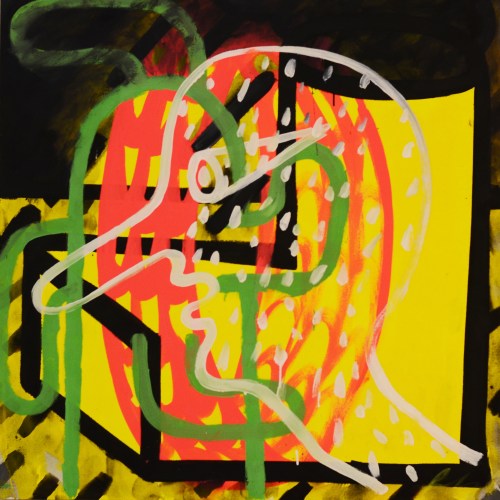 This series is a continuation of the practice started in the previous two series of paintings, All we have is now (2016) and Concentrated Daydreaming (2015). The use of specific glyphs has been combined with figurative elements in an attempt to create a language, even though the meanings remain obscure. Within this series the heavy overpainting from All we have is now (2016) has started to be dropped in favour of a clearer more graphic image.