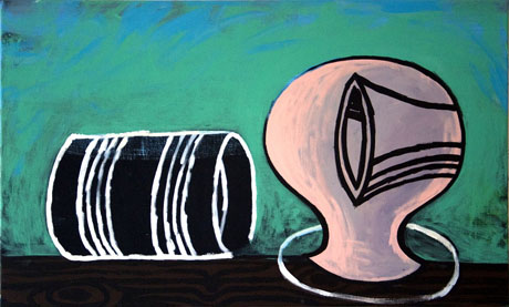 The starting point for this exhibition is a mundane domestic scene, the wooden dining table with its boiled eggs, plates, newspapers, kids drawings, books, doodles, and radio informing us of the latest atrocities from around the world. All images are taken as equal and combined to form half baked narratives.