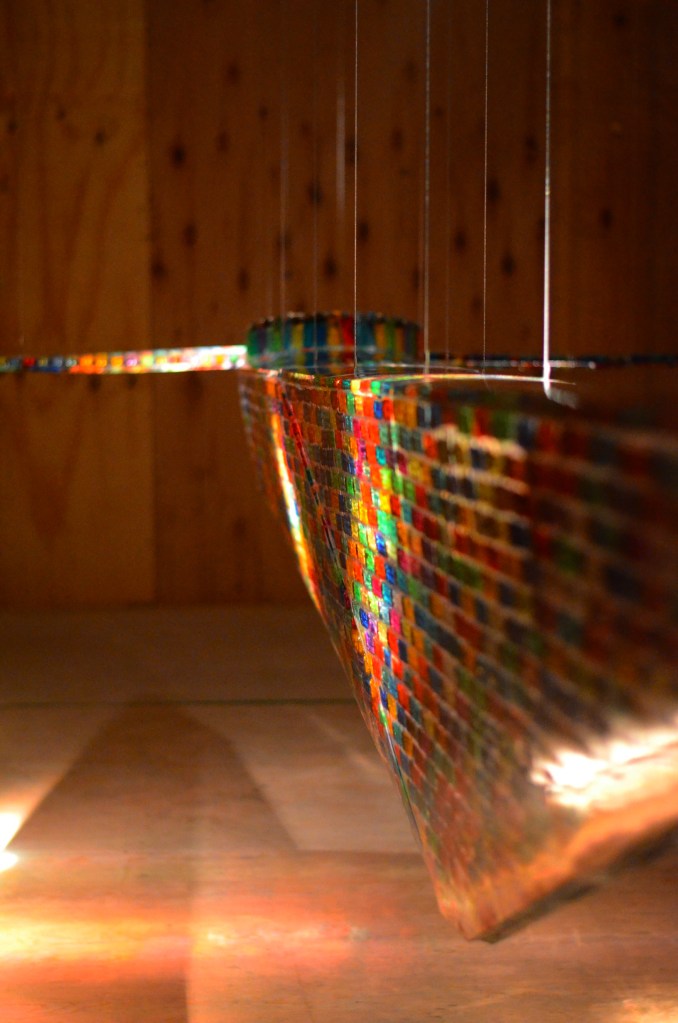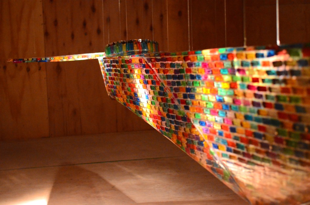The installation The Road to New York was exhibited at g39, Cardiff and Oriel y Parc, St Davids. Work consists of a flying kayak constructed from found cigarette lighters embedded in clear epoxy resin